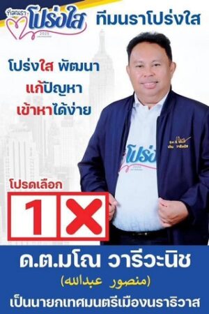 หมายเลข 1 ดาบตำรวจ “ มโณ วารีวะนิช” ทีม “นราโปร่งใส” คนรุ่นใหญ่ เดินเกมแบบคลาสสิก ประกาศยืนหยัดคำพูดเดียว “จะไม่ซื้อสิทธิ์ขายเสียงตลอดการปราศรัยหาเสียง” อดีตท่านเคยสมัคร ส.ส พรรครวมพลังประชาชาติ เป็นญาติสนิทกับลุงกำนัน ขอกลับมาอีกครั้งพร้อมทีมข้าราชการนักธุรกิจเก่า รองผู้ว่าฯเป็นที่ปรึกษาและมีฐานเสียงชาวพุทธสายโรตารี และชาวมุสลิมที่เชื่อใจกัน การันตี connection ลึกในพื้นที่และองค์กรต่างๆเปิดเกมแบบเน้น “ความโปร่งใส” เคาะประตูบ้าน ไม่แจกไม่ซื้อเสียงอย่างแน่ เรามาลุ้นกันว่า “การเมืองสะอาด ปราศจากซื้อเสียง” จะยังขายได้ในเทศบาลเมืองนราฯ หรือไม่