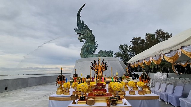 วันนี้ 4 พฤษภาคม 2568 เวลา 9:30 น ที่บริเวณลานพญานาคพ่นน้ำ ปลายแหลมสนอ่อน เขตเทศบาลนครสงขลา อำเภอเมือง จังหวัดสงขลา ทางเทศบาลนครสงขลา ได้จัดพิธีบวงสรวงพญานาคพ่นน้ำ มาสคอตของแหลมสนอ่อนแหล่งท่องเที่ยวของจังหวัดสงขลา เพื่อความเป็นสิริมงคลแก่เมืองสงขลา หลังปิดพื้นที่มานานเกือบ 6 ปี ขณะนี้ได้ทำการ ก่อสร้างปรับปรุงพื้นที่เสร็จเรียบร้อยแล้ว จึงได้ทำการจัดพิธีบวงสรวงพญานาคพ่นน้ำขึ้นในวันนี้ โดยมี นายโชตินรินทร์ เกิดสม ผู้ว่าราชการจังหวัดสงขลา เป็นประธานในพิธี มีนายวันชัย ปริญญาศิริ นายกเทศมนตรีนครสงขลา คณะผู้บริหาร เทศบาลนครสงขลา หัวหน้าส่วนราชการและประชาชนชาวสงขลา เข้าร่วมพิธีเป็นจำนวนมาก