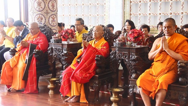 โดยมี นายโชตินรินทร์ เกิดสม ผู้ว่าราชการจังหวัดสงขลา ประธานกรรมการจัดงานฝ่ายฆราวาส นางดวงพร วิจิตรธนารักษ์ กรรมการฝ่ายบริหารโรงแรมเดอะรีเจนซีหาดใหญ่ ประธานดำเนินงานฝ่ายฆราวาส นายวิทยา จันทน์เสนะ รองผู้ว่าราชการจังหวัดสงขลา ตลอดจนคณะสงฆ์ไทย-จีน ข้าราชการ พุทธศาสนิกชนในพื้นที่เข้าร่วมพิธีอันเปี่ยมด้วยจิตศรัทธา