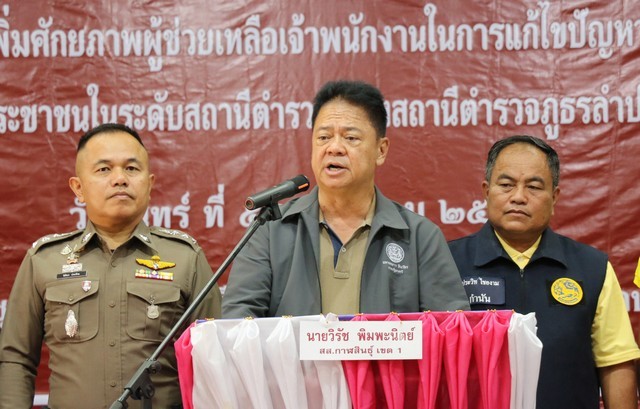 ที่ห้องประชุมกาสะลอง โรงเรียนชุมชนหนองสอวิทยาคาร ต.ลำปาว อ.เมือง จ.กาฬสินธุ์ นายวิรัช พิมพะนิตย์ ส.ส.กาฬสินธุ์ เขต 1 เป็นประธานเปิดโครงการฝึกอบรมเพิ่มศักยภาพผู้ช่วยเหลือเจ้าพนักงานในการแก้ไขปัญหาความเดือดร้อนของประชาชนในระดับสถานีตำรวจ ของสถานีตำรวจธรลำปาว พร้อมร่วมเป็นสักขีพยานในพิธีลงนามร่วมมือ 4 เสาหลักระหว่าง ฝ่ายปกครอง ท้องถิ่น สาธารณสุข (รพ.สต.) และตำรวจ เพื่อร่วมกันในการแก้ไขปัญหาความเดือดร้อนของประชาชนในพื้นที่รับผิดชอบ เพื่อสังคมปลอดภัย และสงบสุข