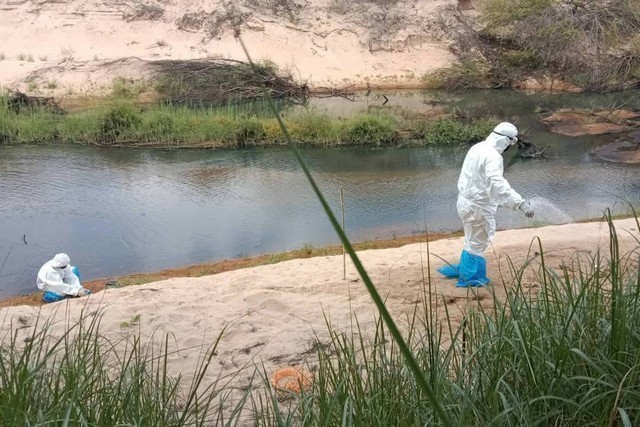 ต่อมา เจ้าหน้าที่ปศุสัตว์จังหวัดมุกดาหาร ได้เดินทางไปยังบริเวณริมลำห้วยบางทราย บ้านโคกสว่าง ซึ่งเป็นจุดที่ผู้ชำแหละซากวัวเมื่อวันที่ 28 เมษายนที่ผ่านมาได้นำเอาเศษซากวัวที่เหลือจากการชำแหละแล้วแบ่งปันให้กับคนในหมู่บ้านไปทิ้ง โดยเจ้าหน้าที่ได้เข้าทำการผสมน้ำยาฆ่าเชื้อแล้วใส่ฝักบัวนำไปรดทั่วบริเวณที่เคยใช้ทิ้งซากวัวดังกล่าว ส่วนซากวัวเจ้าหน้าที่ได้นำไปฝังกลบในที่ปลอดภัยเรียบร้อยแล้ว