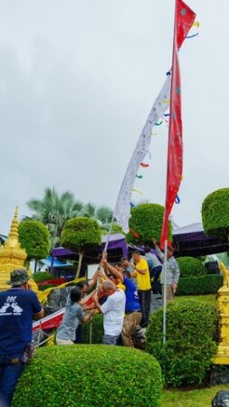ในโอกาสนี้ได้รับความเมตตาจากพระครูเกษมกิจโสภณ และพระสงฆ์รวม 9 รูป มาร่วมเจิมแป้ง ปิดทอง และประพรมน้ำพระพุทธมนต์แก่ธงมนตราทั้ง 9 ผืน ไฮไลต์สำคัญของครั้งนี้ คือการเปลี่ยนธงรูปแบบใหม่ที่ได้รับมอบจาก สถานเอกอัครราชทูตภูฏานประจำประเทศไทยซึ่งเป็น 1ใน 6 แบบที่มอบให้สวนนงนุชพัทยา นับเป็นเกียรติอย่างยิ่ง และสะท้อนถึงสายสัมพันธ์ทางวัฒนธรรมระหว่างสองประเทศ