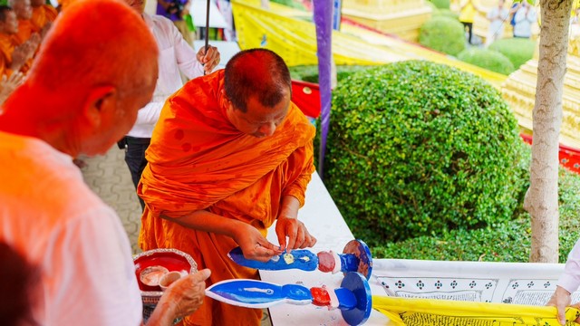 ในโอกาสนี้ได้รับความเมตตาจากพระครูเกษมกิจโสภณ และพระสงฆ์รวม 9 รูป มาร่วมเจิมแป้ง ปิดทอง และประพรมน้ำพระพุทธมนต์แก่ธงมนตราทั้ง 9 ผืน ไฮไลต์สำคัญของครั้งนี้ คือการเปลี่ยนธงรูปแบบใหม่ที่ได้รับมอบจาก สถานเอกอัครราชทูตภูฏานประจำประเทศไทยซึ่งเป็น 1ใน 6 แบบที่มอบให้สวนนงนุชพัทยา นับเป็นเกียรติอย่างยิ่ง และสะท้อนถึงสายสัมพันธ์ทางวัฒนธรรมระหว่างสองประเทศ