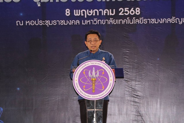 วันที่ 8 พฤษภาคม 2568 นายศุภชัย ใจสมุทร ผู้ช่วยรัฐมนตรีประจำกระทรวงการอุดมศึกษา วิทยาศาสตร์ วิจัยและนวัตกรรม (อว.) พร้อมด้วยคณะผู้บริหารกระทรวงฯ ลงพื้นที่ติดตามการขับเคลื่อนงานด้านการอุดมศึกษา วิทยาศาสตร์ วิจัยและนวัตกรรม หรือ อววน. ในพื้นที่จังหวัดปทุมธานี ในการนี้มี นายองค์รักษ์ ทองนิรมล รองผู้ว่าราชการจังหวัดปทุมธานี พลตำรวจโทคำรณวิทย์ ธูปกระจ่าง นายกองค์การบริหารส่วนจังหวัดปทุมธานี รองศาสตราจารย์ ดร.สมหมาย ผิวสอาด รักษาการในตำแหน่งอธิการบดีมหาวิทยาลัยเทคโนโลยีราชมงคลธัญบุรี รองศาสตราจารย์ ดร.เกียรติศักดิ์ แสงประดิษฐ์ ผู้อำนวยการสถาบันวิจัยและพัฒนา มหาวิทยาลัยเทคโนโลยีราชมงคลธัญบุรี พร้อมทั้งผู้บริหารหน่วยงานในสังกัดกระทรวงการอุดมศึกษาฯ หัวหน้าส่วนราชการในจังหวัดปทุมธานี อาจารย์ บุคลากร นักศึกษา และประชาชนในพื้นที่ ร่วมต้อนรับและเข้าร่วมกิจกรรมอย่างคับคั่ง ณ หอประชุม มหาวิทยาลัยเทคโนโลยีราชมงคลธัญบุรี