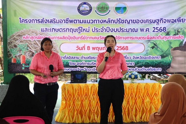 วันที่ 8 พฤษภาคม 2568 #นายกลยุทธ ฉายแสง #นายกองค์การบริหารส่วนจังหวัดฉะเชิงเทรา มอบหมายให้ #ดร.รัฐสภา นพเกตุ #รองนายกองค์การบริหารส่วนจังหวัดฉะเชิงเทรา เป็นประธานเปิดโครงการส่งเสริมอาชีพตามแนวทางหลักปรัชญาของเศรษฐกิจพอเพียงและเกษตรทฤษฎีใหม่ ประจำปีงบประมาณ พ.ศ.2568 หลักสูตรฝึกอบรมการผลิตปุ๋ยอินทรีย์จากเศษวัสดุเหลือใช้ทางการเกษตรเพื่อลดต้นทุนการผลิต