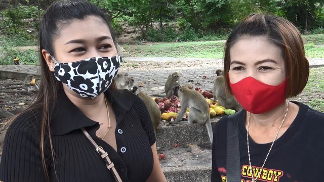 คุณวชิรา พรทองขาว เจ้าของร้านส้มตำ บอกว่า วันนี้นำผลไม้มาบริจาคให้ลิง รู้สึกอิ่มบุญ ปรกตินำอาหารมาให้ลิงบ่อย แต่เนื่องจากวันนี้ปิดร้านส้มตำ ตั้งใจมา และซื้ออาหารมาให้ลิงกิน มีทั้งมะม่วงเงาะ และแก้วมังกร