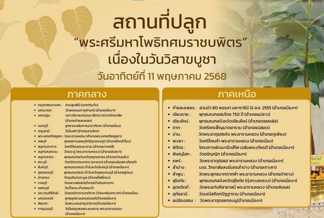 สำหรับพื้นที่ 8 จังหวัดของตำรวจภูธรภาค 2 กำหนดสถานที่ปลูกต้นพระศรีมหาโพธิ์พระราชทาน “พระศรีมหาโพธิทศมราชบพิตร” ดังนี้