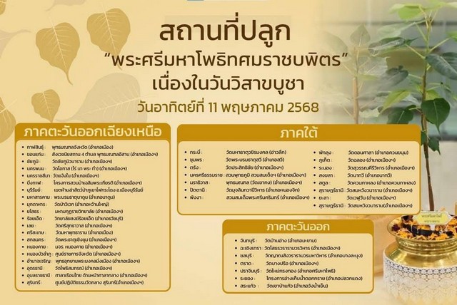 เมื่อวันที่ 10 พฤษภาคม 2568 พล.ต.ท.ยิ่งยศ เทพจำนงค์ ผู้บัญชาการตำรวจภูธรภาค 2 เปิดเผยว่า ตำรวจภูธรภาค 2 ทั้ง 8 จังหวัด ได้เตรียมกำลังพร้อมสนับสนุนภารกิจในการอำนวยความสะดวก และดูแลความสงบเรียบร้อยในพิธีปลูกต้นพระศรีมหาโพธิ์พระราชทาน “พระศรีมหาโพธิทศมราชบพิตร” เนื่องในวันวิสาขบูชา ซึ่งตรงกับวันที่ 11 พฤษภาคม 2568 ในพื้นที่จังหวัดในความรับผิดชอบ ได้แก่ จันทบุรี, ฉะเชิงเทรา, ชลบุรี, ตราด, นครนายก, ปราจีนบุรี, ระยอง และสระแก้ว