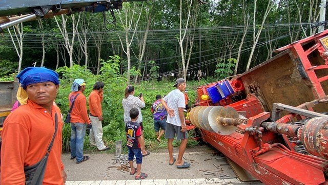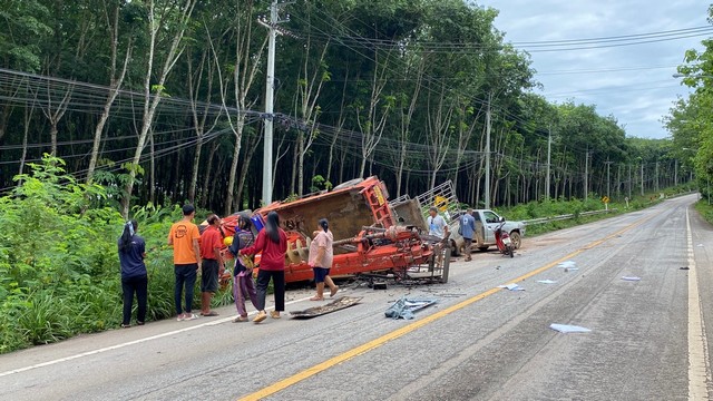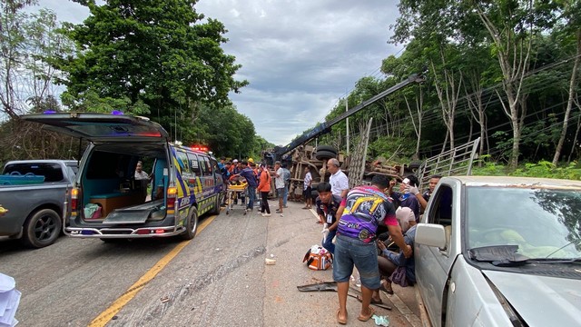 และได้ทราบว่า ตนเองได้ได้นั่งอยู่ด้านหลังของรถการไฟฟ้า เห็นรถลุงจอด ข้างทาง กำลังจะเลี้ยวหรือไม่เลี้ยว ก่อนขึ้นเนินเขามาบ้านเขามะปริง จะมีแยกขวามือเข้าซอย เหมือนจะเลี้ยวเข้าช่วงนั้น รถร่วมการไฟฟ้าได้ลงเนินมาจากเนินบ้านเขามะปริงซึ่งเป็นเนินที่สูงชัน ได้ทำการเบรคยาว เนื่องจากรถหนักเพราะเป็นรถที่ใช้ในการขุดเจาะและการทำเรื่องไฟฟ้าจึงมีอุปกรณ์ที่ขนมาทำให้รถหนักไม่สามารถบังคับรถให้อยู่ได้จึง เกิดประสานงานกับรถกระบะขณะดังกล่าว ส่วนตัวเอง นั้นได้กระเด็นลอยไปอีกฝั่งหนึ่งของถนน มีบาดเจ็บที่แขนและที่นิ้วโป้งเท้าด้านขวา สอบถามอีกหนึ่งรายที่มากับรถการไฟฟ้าก็ไม่ได้ทราบรายละเอียดมากมายเนื่องจากตนเองนั้นนั่งอยู่ด้านหลังสุด ของกระบะ ทัศนวิสัยในการมองเห็นนั้นแทบจะไม่ทราบด้านหน้าว่าอย่างไรเมื่อรถประสานงานแล้วจึงทราบว่ารถนั้นได้ชนและพลิกตะแคงอยู่ด้านล่างตนเองนั้นก็ได้กระเด็นตกลงมาบาดเจ็บเล็กน้อย เหตุการณ์นี้มีผู้บาดเจ็บจำนวนสี่ราย เป็นหญิงหนึ่งรายชายสามราย นำส่งโรงพยาบาลนายายอามเพื่อรักษาตัวต่อไป