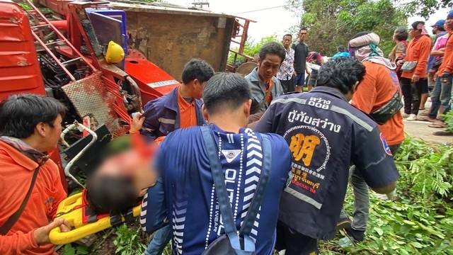 ผู้บาดเจ็บรู้สึกตัวดี อาการบาดเจ็บที่ขาที่แขนและที่ศีรษะ มีเลือดออก และพบเป็นพนักงาน รถร่วมการไฟฟ้าเป็นชายอีกสองราย นั่งด้านหลังของรถร่วมการไฟฟ้า กระเด็นออกมาจากตัวรถไปอีกฝั่งนึง มีบาดแผลที่แขนและที่เท้าที่ไหล่ และได้นำตัวขึ้น ปฐมพยาบาลและ เพื่อนำส่งโรงพยาบาลนายายอาม ส่วนรถกระบะคู่กรณี พบผู้บาดเจ็บ ที่อาศัยมากับรถกระบะ เป็นชายสูงอายุประมาณ 70 ปี และเป็นชายอายุประมาณ 30 ปี บริเวณศีรษะมีเลือดออกทั้งสองราย เป็นแผลลึกแต่ยังรู้สึกตัวดีและเดินไปมาได้ เจ้าที่กู้ภัยสว่าง กตัญญู ได้ทำการเข้าไปปฐมพยาบาลเบื้องต้นโดยให้นั่งลงและปฐมพยาบาลเนื่องจากอยู่นิ่งเดินไปเดินมา และสอบถามผู้ที่มากับรถการไฟฟ้า