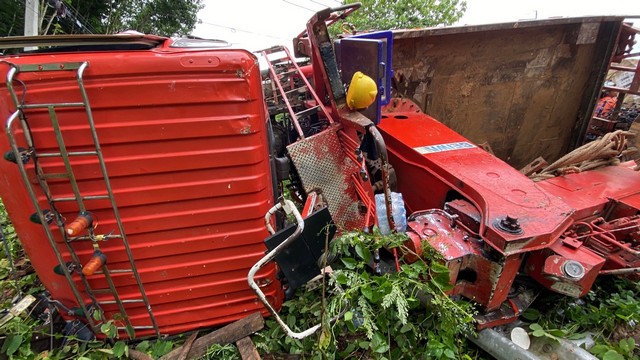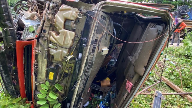 สภาพรถการไฟฟ้ากระจกหน้าแตกละเอียด มีเศษวัสดุในการทำไฟฟ้าหล่นเกลื่อนถนน เศษวัสดุกระจาย หล่นตามพื้นและพบรถกระบะสีบรอน ทะเบียนรถ บน 8540 ระยอง เป็นรถกระบะใส่แซง สภาพหลุดกระบะแยกออกจากตัวรถสภาพยางแตก ด้านขวาของตัวรถมีรอย เฉี่ยวชน กระจกด้านหน้าแตกร้าว พบคราบ เลือดบริเวณเบาะคนขับ อยู่ด้านซ้ายของถนนพิงลาวกั้นถนนอยู่ พบผู้บาดเจ็บเป็นหญิง หนึ่งราย อายุประมาณ 40 ปีติดภายในรถร่วมไฟฟ้า กู้ภัยสว่างกตัญญูและชาวบ้านช่วยกันเอาไม้งัด จะนำผู้บาดเจ็บออก ยังเอาออกไม่ได้ ซักพักนึงได้มีรถยก มาช่วยยกและ สามารถ นำผู้บาดเจ็บ ซึ่งเป็นหญิง มาปฐมพยาบาลเบื้องต้นหน้ารถ
