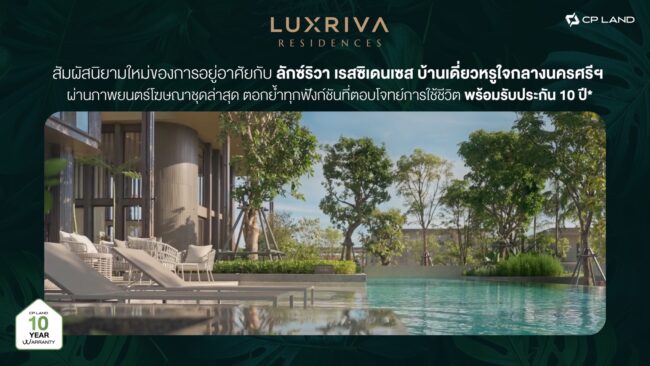 สัมผัสนิยามใหม่ของการอยู่อาศัยกับ ลักซ์ริวา เรสซิเดนเซส บ้านเดี่ยวหรูใจกลางนครศรีฯ ผ่านภาพยนตร์โฆษณาชุดล่าสุด ตอกย้ำทุกฟังก์ชันที่ตอบโจทย์การใช้ชีวิต พร้อมรับประกัน 10 ปี*