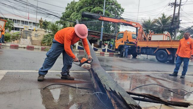 เมื่อเวลา 09.00 น. ของวันที่ 14 พ.ค.68 ผู้สื่อข่าวรายงานว่า ได้เกิดเหตุต้นตาลหักโค่นล้มทับสายไฟแรงสูง และร้านค้า ได้รับความเสียหาย บริเวณ ถนนเลียบชายทะเล หน้า สภ.สัตหีบ ม.2 ต.สัตหีบ อ.สัตหีบ จ.ชลบุรี จึงรุดไปตรวจสอบที่เกิดเหตุ พ.ต.อ.คมสรร คำตุ่นแก้ว ผกก. สภ.สัตหีบ ได้มาอำนวยความสะดวกการจราจร เนื่องจากต้นตาลขนาดความยาวราว 20-25 เมตร น้ำหนักนับ 100 กิโลกรัม หักโค่นขวางถนน ก่อนพาดสายไฟทำให้เสาไฟหักและมีร้านค้าขายอาหารบริเวณใกล้เคียงได้รับความเสียหาย เบื้องต้น เจ้าหน้าที่กิจการไฟฟ้า สวัสดิการสัมปทาน กองทัพเรือ และเทศบาลเมืองสัตหีบ และ สภ.สัตหีบ ได้มาอำนวยความสะดวกให้การช่วยเหลือ นำเลื่อยยนต์ตัดแยกชิ้นส่วนต้นตาล และยกเคลื่อนย้ายออก