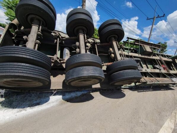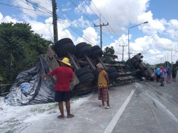 บุรีรัมย์-พ่วงบรรทุกแป้งมันเทกระจาดทับคนตัดหญ้าข้างทางรอดหวุดหวิดเชื่อปาฏิหารย์หลวงปู่สุข