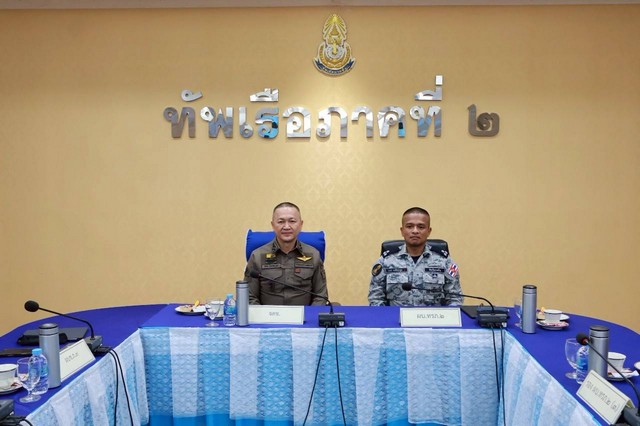 จากนั้นเวลา 14.00 น. พล.ต.อ.ธัชชัยฯ และคณะ พร้อมด้วย พล.ต.ท.ปิยะวัฒน์ เฉลิมศรี ผู้บัญชาการตำรวจภูธรภาค 9 และผู้เกี่ยวข้อง ร่วมประชุมกับฝ่ายทหาร โดยมี พล.ร.ท.นเรศ วงศ์ตระกูล (รน.) ผบ.ทรภ.2/ผอ.ศรชล.ภาค 2 , พล.ร.ต.ปรีชา รัตนสำเนียง รอง ผบ.ทรภ.2 , พล.ร.ต.โชคชัย เรืองแจ่ม ผบ.ฐท.สข.ทรภ.2 , พล.ร.ต.อิทธิพัทธ์ กวินเฟื่องฟูกุล รอง ผอ.ศรชล.ภาค 2 , พล.ร.ต.มรุเดช บุญนิตย์ ผอ.สน.ฝอ.ศรชล.ภาค 2 , พล.ร.ต.ปนิธาน สิทธิโยธาคาร รองเจ้ากรมกิจการพลเรือน กองทัพเรือ ณ กองบัญชาการทัพเรือภาคที่ 2 เพื่อหารือใน 3 ประเด็น ได้แก่