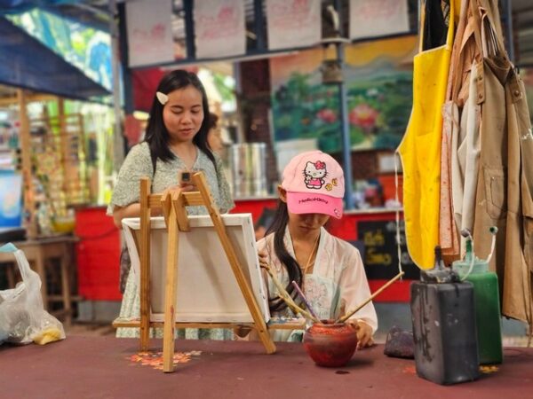 และชมการออกร้านศิลปวัฒธนธรรม ตลาดนัดเด็กศิลป์ งานศิลปะ DIY จากอาจารย์ศิลปินสุโขทัย การแสดงภาพวาดของศิลปินเมืองพระร่วง วันเสาร์ที่ 31 พฤษภาคม 2568