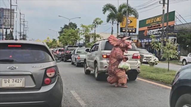 วันนี้ 18 พฤษภาคม 2568 ที่บริเวณถนนสี่แยกคลองหวะ อ.หาดใหญ่ จ.สงขลา ได้มีกลุ่มพ่อค้า แม่ค้า หัวใส ที่นำของกินประเภทขบเคี้ยว และของทานเล่นเพื่อแก้ง่วง ในยามขับขี่รถยนต์ทางไกล โดยบรรดาพ่อค้า แม่ค้า ได้นำตัวมาสคอดทั้งตัวกระต่าย และสัตว์โบราณ มาให้พนักงานสวมใส่เพื่อเดินขายสินค้าในช่วงเวลาที่รถยนต์จอดรถยนต์ติดไฟแดง สร้างความสนใจให้กับผู้ขับรถผ่านไปมา และสินค้าก็ขายดีขึ้นด้วย เป็นการสร้างสีสันในการขายสินค้ารูปแบบใหม่ของพ่อค้า แม่ค้า ที่นี่อีกด้วย