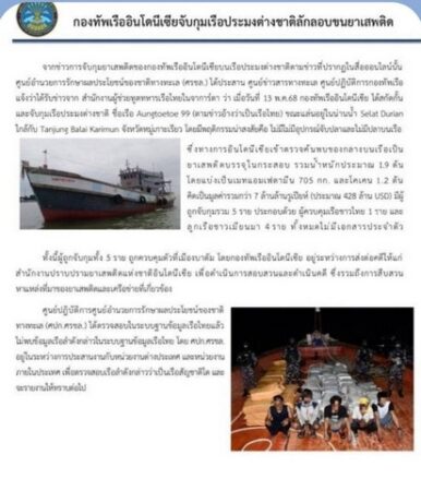 ด่วน “เรือไร้สัญชาติถูกจับกุมโดย กองทัพเรืออินโดนีเซีย” ตรวจสอบไม่พบข้อมูลเรือ ในระบบฐานข้อมูลเรือไทย
