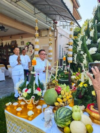 อาจารย์อุตมะ ปภาภูธนะนันต์ ผู้จัดการพิพิธภัณฑ์ครุฑ และผู้ได้รับรางวัล THAILAND MORAL AWARDS 2023 ในฐานะบุคคลผู้สร้างการเปลี่ยนแปลงด้านความกตัญญู ได้ทำหน้าที่เป็นโหรเจ้าพิธี ผู้อาราธนาและประกาศเทวดา ประกอบพิธีตามขนบพระพุทธศาสนาโบราณ ซึ่งสืบทอดมาตั้งแต่สมัยสุโขทัย โดยยึดหลักใน คติไตรภูมิ ที่เน้นเรื่องบาปบุญคุณโทษ และศีลธรรมคุณธรรมอันเป็นหลักของพุทธธรรม