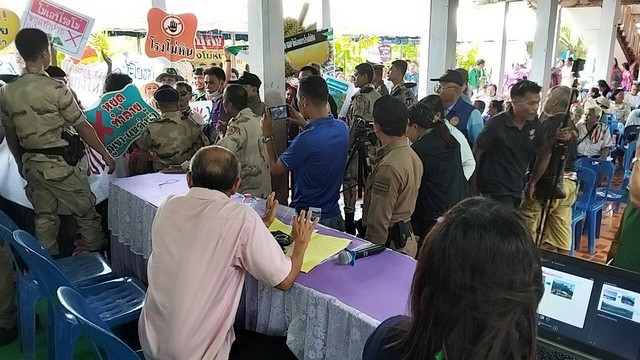 กระบี่-ชาวบ้านฮือ ล้มเวที EIA โครงการอุตสาหกรรมชนิดหินปูนเพื่ออุตสาหกรรมก่อสร้าง บริษัทโรงโม่ตรังภูทอง หวั่นผลกระทบสิ่งแวดล้อมชั่วลูกหลาน ตั้งข้อสังเกตปิด ร.ร.เอื้อนายทุน