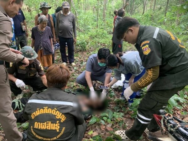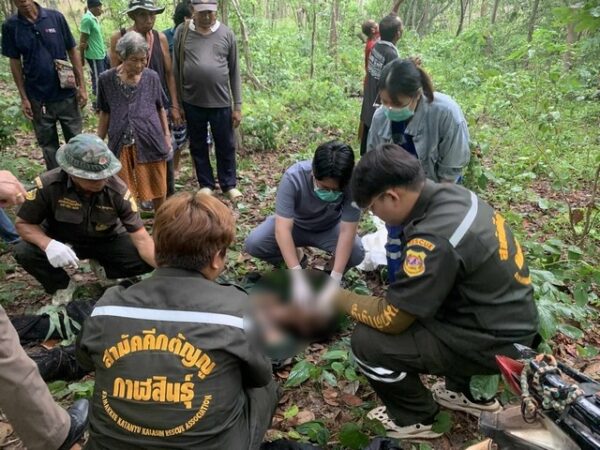 วันที่ 21 พฤษภาคม 2568 ผู้สื่อข่าวได้รับแจ้งจากนายชยพล วัชระอุดมกุล นายกสมาคมกู้ภัยสามัคคีกตัญญูกาฬสินธุ์ ศูนย์ประสานงานเยื้องสี่แยกไฟแดงยางตลาด-โพนทอง เขตเทศบาลตำบลยางตลาด อ.ยางตลาด จ.กาฬสินธุ์ ว่าเมื่อช่วงบ่ายวานนี้ (20 พ.ค.68) เวลาประมาณ 14.30 น. ขณะเกิดฝนตกหนัก สมาคมกู้ภัยสามัคคีกตัญญูกาฬสินธุ์รับแจ้งจาก สภ.ยางตลาด เหตุพบคนนอนเสียชีวิตไม่ทราบสาเหตุ บริเวณภายในป่าชุมชนข้างวัดป่าโนนสวรรค์ บ้านโนนสวรรค์ ต.หนองอีเฒ่า อ.ยางตลาด จ.กาฬสินธุ์ อาสาสมาคมกู้ภัยสามัคคีกตัญญูกาฬสินธุ์ จึงได้ร่วมกับ พ.ต.ท.ไพศาล ใจเกษม สว.(สอบสวน) สภ.ยางตลาด และแพทย์เวรโรงพยาบาลยางตลาดออกตรวจสอบและชันสูตรพลิกศพ