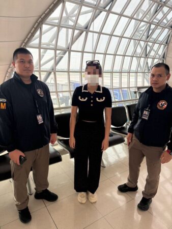 เมื่อวันที่ 21 พ.ค.2568 เวลาประมาณ 15.50 น. กก.สส.ปป.บก.ตม.2 ได้รับการประสานจาก กก.2 บก.สอท.3 ว่า นางสาวรัชนีวรรณ อายุ 30 ปี สัญชาติไทย เป็นบุคคลตามหมายจับศาลจังหวัดขอนแก่น ในความผิดฐาน “ร่วมกันจัดให้มีการเล่น หรือทำอุบายล่อ ช่วยประกาศโฆษณาหรือชักชวนโดยตรงหรือทางอ้อมให้ผู้อื่นเข้าเล่นหรือเข้าพนันในการเล่นพนันทางสื่ออิเล็กทรอนิกส์โดยมิได้รับอนุญาตจากเจ้าพนักงาน และสมคบโดยตกลงกันตั้งแต่สองคนขึ้นไปเพื่อกระทำผิดความผิดฐานฟอกเงินและได้มีการกระทำความผิดฐานฟอกเงินเพราะเหตุที่ได้มีการสมคบกัน และร่วมกันฟอกเงิน” ทาง กก.2 บก.สอท.3 ได้แจ้งข้อมูลเพิ่มเติมว่า จากการตรวจสอบเบื้องต้นพบว่ามีเงินหมุนเวียนในบัญชีที่เกี่ยวข้องกับผู้ต้องหากว่า 10 ล้านบาท โดยได้รับแจ้งว่าบุคคลดังกล่าวจะเดินทางออกนอกราชอาณาจักรผ่านท่าอากาศยานสุวรรณภูมิ ด้วยสายการบิน CATHAY PACIFIC เที่ยวบินที่ CX706 เส้นทาง BKK – HKG ในวันเดียวกัน และขอให้ดำเนินการติดตามจับกุม รวมถึงบันทึกข้อมูลในระบบสารสนเทศ สตม.