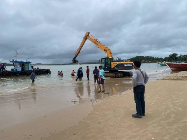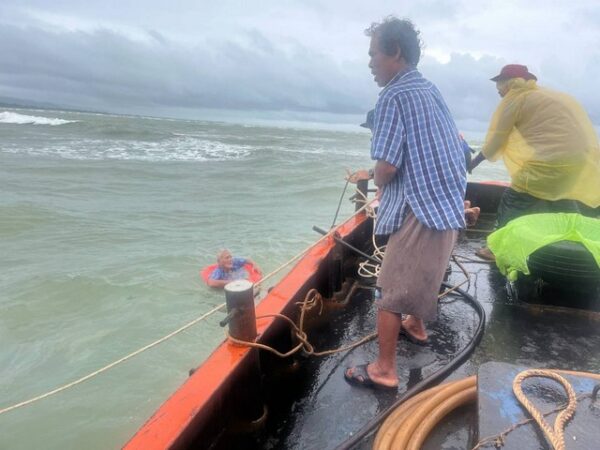 เมื่อวันที่ 23 พ.ค.68 ผู้สื่อข่าวรายงานว่า ที่ บริเวณปากอ่าวร่องน้ำบ้านน้ำเค็ม ม.2 ต.บางม่วง อ.ตะกั่วป่า จ.พังงา ได้เกิดคลื่นและกระแสลมมีกำลังแรง ซัดเรือโชคทวิตาเป็นเรือประมงพื้นบ้านอัปปางจนทำให้ลูกเรือทั้ง 4 คนต้องลอยคอในทะเล ระหว่างนั้นมีชาวบ้านที่เห็นเหตุการณ์ได้ประสานไปยังเจ้าหน้าที่กรมเจ้าท่าที่อยู่ระหว่างการปฏิบัติภารกิจโดยมีเรือเหล็กจอดอยู่บริเวณใกล้กับที่เกิดเหตุ จึงได้นำเรือออกไปช่วยเหลือ พร้อมนายมนัสศักดิ์ ยวนแก้ว ผู้ใหญ่บ้าน ม.2 บ้านน้ำเค็ม อาสากู้ภัยหมูาบ้าน และชาวบ้านได้อกช่วย 4 ลูกเรือชาวประมงที่ลอยคอในทะเล ซึ่งทางเจ้าหน้าที่ต้องขับเรือฝ่ากระแสคลื่นลมแรงออกไปจนสามารถช่วยลูกเรือทั้ง 4 คนได้อย่างปลอดภัยส่วนเรือถูกคลื่นซัดจมและถูกกระแสน้ำพัดไปติดที่ใกล้ฝั่ง เจ้าหน้าที่จึงใช้สายสลิงผูกเข้ากับรถแบ๊กโฮดึงเรือประมงที่จมเข้าฝั่งได้ที่สุด