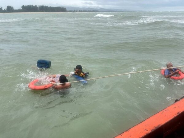 พังงา-!!คลื่นแรงจัด!!เรือประมงพื้นบ้านล่มกลางร่องน้ำปากอ่าว ลูกเรือ 4 ชีวิตลอยคอ โชคดีชาวบ้านเห็นแจ้งเจ้าหน้าที่ร่วมช่วยเหลือจนปลอดภัย