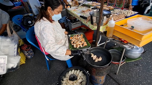 สำหรับส่วนผสมหลัก ๆ เราจะเลือกหมูล้วนๆ แล้วเอามาบด แล้วก็มีผัก เราไม่ผสมแป้ง ไม่ผสมเนื้อไก่ เน้นของสด ผสมเครื่องปรุงที่น้อย ให้มีรส ของหมูที่ดี แล้วทำน้ำจิ้มโซยุ ใส่วัตถุดิบที่ดี โดยขายที่นี่ที่เดียวอาทิตย์ละวัน ลูกค้าเยอะ เวลาหยุดไป ลูกค้าก็ถามหา ก็เกรงใจ ก็เลยต้องขายอยู่เรื่อยๆ อาทิตย์ละวัน โดยขายกล่องละ 40 บาท 6 ตัว
