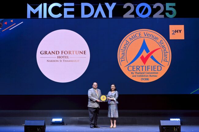 นายปริญญา อ่อนระหุ่ง ผู้ช่วยผู้อำนวยการกลุ่มงานธุรกิจโรงแรม CP LAND กล่าวว่า การที่โรงแรมแกรนด์ฟอร์จูน นครศรีธรรมราช ได้รับการรับรองในประเภท Meeting Room จาก Thailand MICE Venue Standard ถือเป็นการยืนยันถึงคุณภาพการบริการและมาตรฐานของห้องประชุมภายในโรงแรม ซึ่งนับเป็นความภาคภูมิใจที่สามารถตอบโจทย์ความต้องการของลูกค้าในด้านการจัดประชุมและกิจกรรมทางธุรกิจได้อย่างครบถ้วน การได้รับการรับรองในครั้งนี้ยังช่วยเพิ่มความเชื่อมั่นให้กับลูกค้าและพันธมิตร ว่าโรงแรมแห่งนี้เป็นสถานที่ที่พร้อมรองรับงานในระดับสากลได้อย่างมืออาชีพ พร้อมสร้างประสบการณ์ที่น่าประทับใจให้กับทั้งผู้จัดงานและผู้เข้าร่วม
