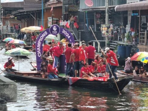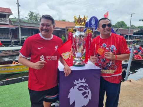 ราชบุรี-แชมป์ ลิเวอร์พูลแฟนคลับหงส์แดงจัดฉลองชัย แห่ถ้วยฉลองแชมป์ ลิเวอร์พูล สร้างประวัติศาสตร์แห่ถ้วยทางน้ำไปตามลำคลองดำเนินสะดวก กว่า 12 กม