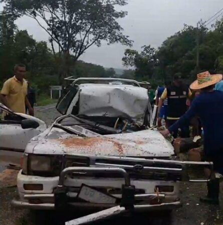 โดย สภาพศีรษะถูกทับ ส่วนลูกสาวอยู่ในแคปด้านหลังคนขับบาดเจ็บไม่มาก ก่อนเกิดเหตุ 3คนพ่อแม่ลูกเดินทางอกจากบ้านเพื่อที่จะไปเยี่ยมญาติที่ป่วยอยู่ที่ โรงพยาบาลนิคมคำสร้อย โดยคาดว่าระว่างขับรถมาต้นไม้ได้ล้มลงมาพอดีจึงทำให้ทับลงบริเวณห้องคนขับด้านหน้าทำให้ นาย สุพจน์ ภูมิลา อายุ 54 ปี และ นางทองเลข ภูมิลา อายุ 49 ปี ทำให้เสียชีวิตทันที่ ส่วนลุกสาวอายุ 16 ปี ถูกนำส่งโรงพยาบาล