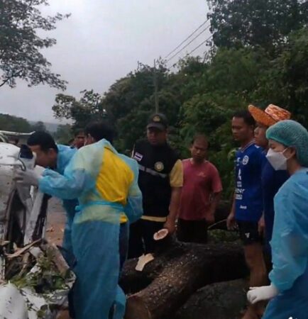 จากการสอบถามที่เห็นเหตุการณ์คนแรก เล่าว่า ขณะเกิดเหตุตนขับรถจะกลับบ้านแล้วก็มาเจอ ต้นไม้ล้มลงมาทับรถกระบะคันดังกล่าวจึงได้เดินเข้าไปดูพบว่าด้านหน้าบริเวณห้องคนขับยุบลงไปทับตัวและหัวของผู้เสียชีวิตทั่งสองคนส่วนด้านหลังพบว่าเป็นเด็กวัยรุ่นผู้หญิงจึงแจ้งกู้ภัยเข้าช่วยเหลือเอาผู้บาดเจ็บและผู้เสียชีวิตออกมาจากตัวรถดังกล่าว