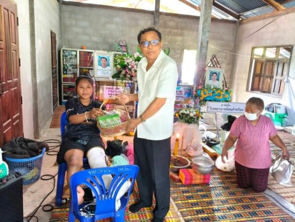 มุกดาหาร -นอภ.นิคมคำสร้อย นำ จนท. ร่วมให้กำลังใจครอบครัว “ภูมิลา” หลังสูญเสียพ่อแม่จากอุบัติเหตุต้นไม้ล้มทับรถ