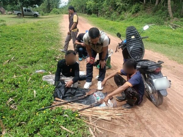 โดยขณะเจ้าหน้าที่ปฏิบัติหน้าที่สืบสวนหาข่าวยาเสพติดในพื้นที่ พบชายสองคนขี่รถจักรยานยนต์ ฮอนด้าเวฟ สีน้ำเงิน ทะเบียน กฆ 4853 พัทลุง ท่าทางมีพิรุธ พอเห็นตำรวจถึงกับเร่งเครื่องหนี แต่สุดท้ายไม่รอด ถูกจับไว้ได้ทัน