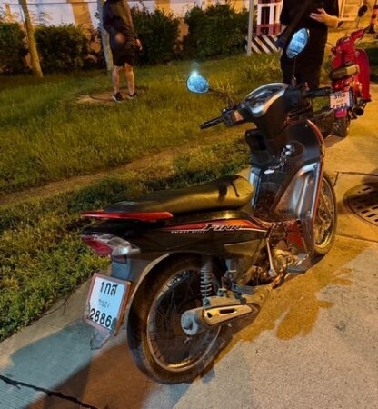 ชลบุรี-พบแล้ว จยย.คนร้าย ที่ใช้ก่อเหตุกระชากกระเป๋า เอาไปจอดทิ้งบ้านแม่ ก่อนจะหลบหนีไป
