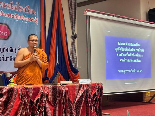 ทั้งนี้ ได้รับความเมตตาจาก พระวัฒนวชิรเมธี,ดร. รองอธิการบดี ผู้อำนวยการศูนย์บริการวิชาการ, รก. บรรยายในหัวข้อเรื่อง “การเผยแผ่ธรรมในโลกดิจิทัล : โอกาสหรือความเสี่ยง” พระครูสิทธิวราคม,ดร. รองเจ้าคณะจ.กาฬสินธุ์ (ธ) บรรยายในเรื่อง “การสอนศีลธรรมยุคใหม่ : ความท้าทายและโอกาส” ดร.พรทิวา ชนะโยธา หัวหน้าฝ่ายจัดการศึกษา มมร.วิทยาเขตร้อยเอ็ด บรรยายเรื่อง “การสื่อสารพระพุทธศาสนายุคดิจิทัล : AI” บรรยากาศมีความเข้มข้นทั้งด้านวิชาการ เสริมทักษะมีการให้คำแนะนำแก่คณะครูพระฯ เพื่อยกระดับการสอนด้วยการนำนวัตกรรมสมัย เพื่อกระตุ้นการเรียนรู้ของเยาวชนเสริมนิทานธรรมะโดยอ้างอิงจากพระไตรปิฎก เป็นต้น