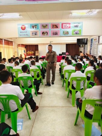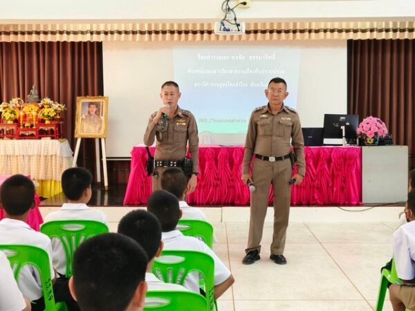 วันที่ 30 พ.ค.68 ที่โรงเรียนเทศบาล1 บ้านโคกสำโรง อ. โคกสำโรง จ. ลพบุรี ภายใต้การอำนวยการของ พ.ต.อ.จาตุรนต์ อนุรักษ์บัณฑิต ผกก.สภ.โคกสำโรง พ.ต.ท.มนตรี เล่ห์อิ่ม รอง ผกก.ป.ฯ โดย พ.ต.ต.ชยพล ตรีโอษฐ์ สวป.(ชส.)ฯ ร.ต.อ.โกวิทย์ พลั่วพันธ์ รอง สวป.(ชส.)ฯ ร.ต.อ.พรชัย ธรรมวริทธิ์ รอง สว.(ป.)ฯ ด.ต.พฤกษ เหมาะสมัย ผบ.หมู่(ป.)ฯ ส.ต.ต.ศรัณญ์ บุญภาพผบ.หมู่(ผช.พงส.)ฯ ร่วมบรรยายให้ความรู้เกี่ยวกับพิษภัยยาเสพติด(บุหรี่ไฟฟ้า) ตามโครงการรณรงค์และแก้ไขปัญหายาเสพติด to be number one และวันงดสูบบุหรี่โลก แก่นักเรียนโรงเรียนเทศบาล 1 บ้านโคกสำโรง ชั้นมัธยมศึกษาปีที่ 1 จำนวน 180 คน มี นายสมบูรณ์ ตรีฤกษ์งาม ปลัดเทศบาลตำบลโคกสำโรงประธาน คณะครูโรงเรียนเทศบาล 1 บ้านโคกสำโรง ผู้นำชุมชน 5 หลักเมือง และคณะกรรมการ ร่วมกิจกรรมในครั้งนี้