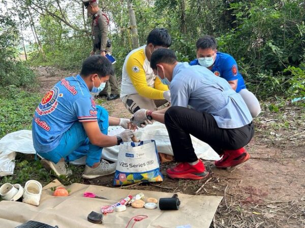 วานนี้( 29 พฤษภาคม 2568 ) เวลา 16.30 น. โดยประมาณ น.พ.ต.อ.คมคิด ปราบมนตรี ผกก.สภ.โพธิ์ชัย พร้อมด้วย ร.ต.อ.สมพงษ์ บุตรแสนโคต รร้อยเวรสอบสวน สภ.โพธิ์ชัย ได้รับแจ้งเหตุฆาตกรรมมีผู้เสียชีวิตที่ป่าละเมาะ ปากทางเข้าบ้านหนองแสง ตำบลหนองตาไก้ อำเภอโพธิ์ชัย จังหวัดร้อยเอ็ด จึงรุดตรวจสอบพร้อมชุดสืบสวนและหน่วยกู้ภัยอโสกร่องคำ แพทย์เวร รพ.โพธิ์ชัย ตำรวจพิสูจน์หลักฐาน ภ.จว.ร้อยเอ็ด