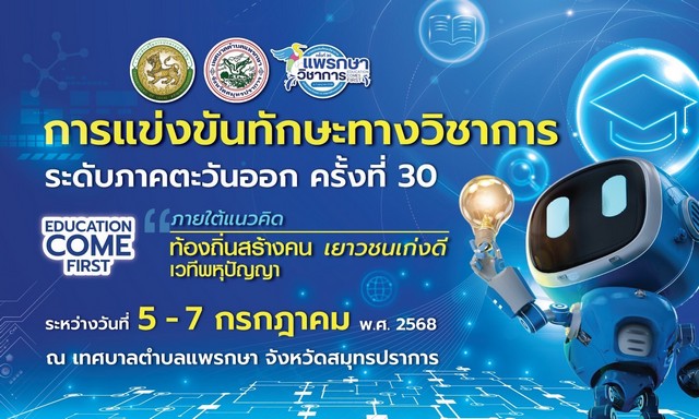 ผู้สื่อข่าวรายงานว่า เทศบาลตำบลแพรกษา โดยนางอรัญญา สุวรรณบุตร นายกเทศมนตรีตำบลแพรกษา พร้อมด้วย ดร.ยงยุทธ สุวรรณบุตร สมาชิกสภาผู้แทนราษฎร จังหวัดสมุทรปราการ สมัยที่ 25 ที่ปรึกษากิตติมศักดิ์นายกเทศมนตรีตำบลแพรกษา ดำเนินการเตรียมพร้อมจัดการแข่งขันทักษะวิชาการ ระดับภาคตะวันออก ครั้งที่ 30 ระหว่างวันที่ 5-7 กรกฎาคม 2568 ซึ่งทางเทศบาลตำบลแพรกษาได้รับเกียรติเป็นเจ้าภาพใหญ่ในการจัดการแข่งขันในครั้งนี้ ภายใต้แนวคิด EDUCATION COME FIRST ท้องถิ่นสร้างคน เยาวชนเก่งดี เวทีพหุปัญญา