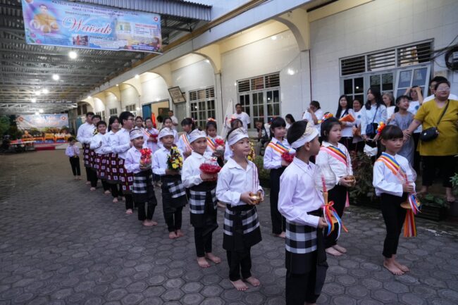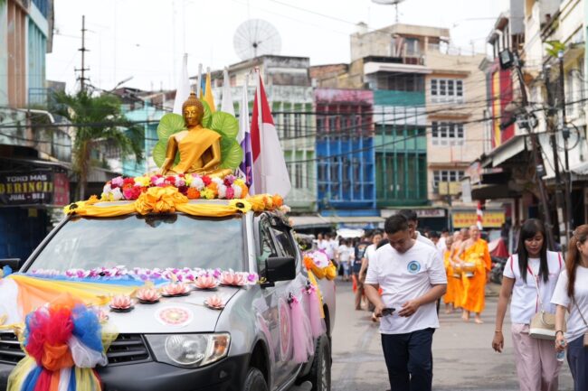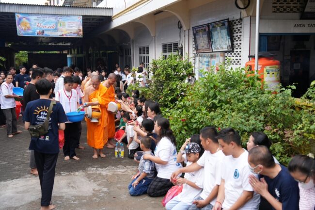 กิจกรรมครั้งนี้จัดขึ้นโดยมีพระครูภาวนาสรกิจ (พนาวัลย์ สุภโชโต) เจ้าอาวาสวัดพุทธชวากลาง, พระมหา ดร.วุฑฒ์ สุวุฑฺฒิโก, พระครูสมุห์สนิทวงศ์ วุฑฺฒิวํโส ผู้อำนวยการสำนักสื่อสารองค์กร วัดพระธรรมกาย , สมาคมพุทธศาสนามหานิกายอินโดนีเซีย (MBMI) และคณะสงฆ์จากวัดพุทธจามบี เป็นผู้นำทางจิตวิญญาณให้แก่เหล่าพุทธศาสนิกชน โดยบรรยากาศในพิธีตั้งแต่ช่วงเช้า คณะสงฆ์ได้ออกบิณฑบาตโปรดญาติโยมจากใจกลางเมืองจามบี เป็นระยะทางกว่า 5 กิโลเมตร ท่ามกลางศรัทธาอันเปี่ยมล้นของประชาชนกว่าหนึ่งพันคนที่มาร่วมใส่บาตรด้วยจิตใจเลื่อมใสในพระรัตนตรัย ต่อมาในช่วงสาย ได้มีการปฏิบัติธรรมพร้อมเชื่อมโยงจิตใจไปยังวัดพระธรรมกาย ประเทศไทย เพื่อร่วมกันสวดมนต์ บูชาพระรัตนตรัย และเจริญสมาธิภาวนา ถวายเป็นพุทธบูชาและพระราชกุศล