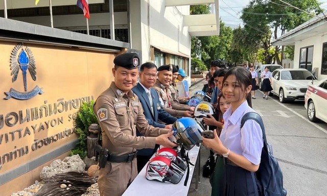 วันที่ 4 มิ.ย. 2568 เวลา 09.00 น. ที่บริเวณด้านหน้าโรงเรียนขอนแก่นวิทยายน เขตเทศบาลนครขอนแก่น พ.ต.อ.ธนาวัชร ดีบุญมี ณ ชุมแพ รองผู้บังคับการตำรวจภูธรจังหวัดขอนแก่น พร้อมด้วย พ.ต.อ.ยศวัจน์ แก้วสืบธัญนิจ ผู้กำกับการสถานีตำรวจภูธรเมืองขอนแก่น และเจ้าหน้าที่ตำรวจจราจร นำโดย พ.ต.ท.สุรพรชัย วงศ์ผาคุณ รองผู้กำกับการจราจร และ พ.ต.ท.ยุทธพงศ์ คชรัตน์ สารวัตรจราจร เดินหน้าร่วมกันรณรงค์โครงการ “ถนนปลอดภัย สวมหมวกนิรภัย 100%” เพื่อเสริมสร้างวินัยจราจรและลดอุบัติเหตุบนท้องถนนในพื้นที่จังหวัดขอนแก่น โดยมีนายบุญเหลือทองอ่อนผู้อำนวยการ [เชี่ยวชาญ] โรงเรียนขอนแก่นวิทยายนพร้อมด้วยคณะผู้บริหารและนักเรียน ร่วมในกิจกรรม