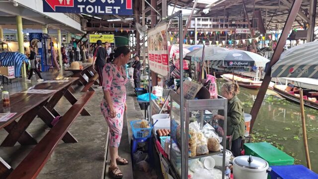.ด้าน น.ส.อัญธิชา แสงสว่าง เจ้าของร้านก๋วยเตี๋ยวนายบอล ภายในตลาดน้ำดำเนินสะดวก กล่าวว่า หลังจากที่ได้มีการเผยแพร่การ์ตูนโดราเอมอนได้เผยแพร่ ได้มีนักท่องเที่ยวชาวญี่ปุ่นมาตามลอยกัน ซึ่งจากที่ตนสังเกตพบว่ามีนักท่องเที่ยวชาวญี่ปุ่นเดินทางมาเที่ยวเพิ่มขึ้น จากที่ซบเซาไปตั้งแต่ช่วงแผ่นดินไหว นักท่องเที่ยวลดน้อยลง ไม่คึกคักเหมือนเดิม.อย่างไรก็ดี ตลาดน้ำดำเนินสะดวก ยังเป็นแหล่งท่องเที่ยวอันซีนของประเทศไทย หรือที่รู้จักกันทั่วไปในนามตลาดน้ำคลองต้นเข็ม เป็นสถานที่ท่องเที่ยวที่มีชื่อเสียงมากของราชบุรี อยู่ห่างจากกรุงเทพฯ ราว 80 กิโลเมตร ในราวปี พ.ศ. 2409 รัชกาลที่ 4 โปรดเกล้าฯ ให้ขุดคลองดำเนินสะดวกระยะทางกว่า 32 กิโลเมตร เชื่อมแม่น้ำแม่กลองที่บางนกแขวกกับแม่น้ำท่าจีนที่ประตูน้ำบางยาง และมีคลองซอยเล็ก ๆ มากมาย ทำให้ชาวบ้านในราชบุรี สมุทรสงคราม และสมุทรสาคร สามารถติดต่อกันทางน้ำได้สะดวก