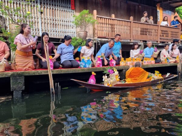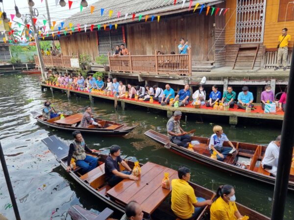 ท่องเที่ยวและกีฬาจังหวัดราชบุรี จัดกิจกรรมตักบาตรทางน้ำในคลองดำเนินสะดวกเพื่อให้กลุ่มเป้าหมายในพื้นที่มีความรู้ ความเข้าใจในแนวส่งเสริม Soft Power ด้านการท่องเที่ยว
