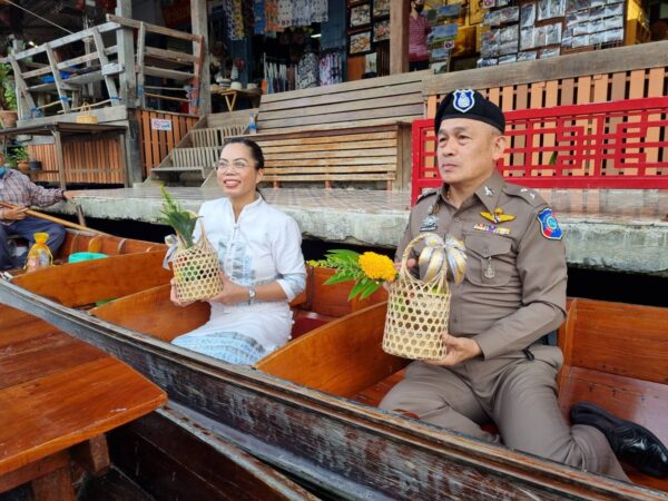 วันที่ 12 มิถุนายน 2568 ที่บริเวณตลาดน้ำดำเนินสะดวก อ.ดำเนินสะดวก จ.ราชบุรี โดยมีนางกาญจน์กุระ ฮัยสคาเนน ท่องเที่ยวและกีฬาจังหวัดราชบุรีพร้อมทั้งนายวุฒิชัย บุญเอื้อ หัวหน้ากลุ่มงานยุทธศาสตร์และแผนงาน สนง.ท่องเที่ยวและกีฬา จ.ราชบุรี พตต.คุ้มเขต ปฐมวราวุฒิ สวป.สภ.ดำเนินสะดวก นายสุภเวช ชัยทัศน์ รอง ผอ.โรงพยาบาลดำเนินสะดวก นายประดิทรรศณ์ บวรเกษมพันธุ์ ปลัดอาวุโสอำเภอดำเนินสะดวก พร้อมทั้งหัวหน้าส่วนราชการ พ่อค้า ชาวบ้านในพื้นที่ และนักท่องเที่ยว ร่วมล่องเรือตักบาตร โดยมีผู้ประกอบการเรือพายในพื้นที่ 9 แห่งส่งเรือเข้าร่วมสนับสนุนกิจกรรม พระสงฆ์จากวัดโชติทายการามพายเรือรับบิณบาตไปตาม พื้นที่ตลาดน้ำดำเนินสะดวก ท่าจันทสุวรรณโน ท่ายุวันดา ท่าเจริญสุนทร ท่าเจริญสุขโข ท่าเรือแป้ว และ ตลาดน้ำเหล่าตั๊กลัก โดยการแต่งกายชุดผ้าไทย สร้างภาพลักษณ์ที่ดีของตลาดน้ำดำเนินสะดวกให้กลับคืนมา ให้นักท่องเที่ยวชาวไทยและชาวต่างประเทศได้เห็นการล่องเรือตักบาตร ที่เป็นวิถีชีวิตชุมชนสองฝั่งคลองวิถีพุทธชาวดำเนินสะดวก