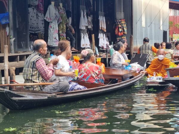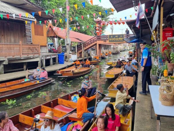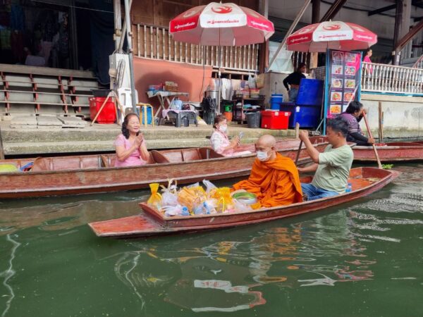 จัดล่องเรือตักบาตรในพื้นที่ตลาดน้ำดำเนินสะดวกร่วมกับผู้ประกอบการเรือพายในพื้นที่ร่วมกันจัดล่องเรือตักบาตรทางน้ำเป็นกิจกรรม ช่วยสร้างภาพลักษณ์ที่ดีวิถีชีวิตในชุมชนสองฝั่งคลอง