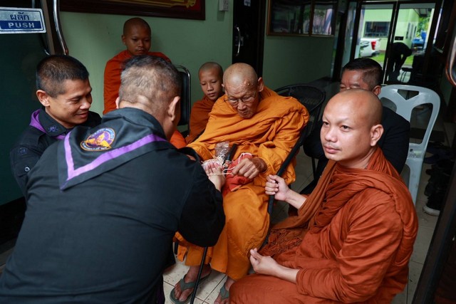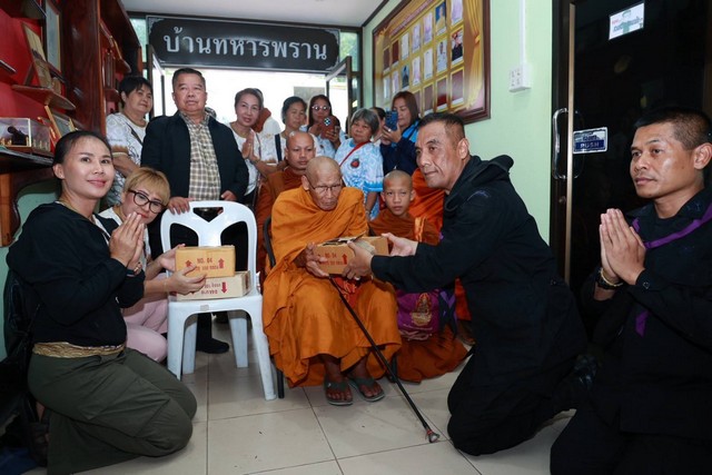 มุกดาหาร หลวงปู่ขาน อินทปัญโญ นำคณะศิษย์ สกทม. ผู้รักชาติร่วมมอบวัตถุมงคล น้ำดื่มและสิ่งของจำเป็นให้ทหาร