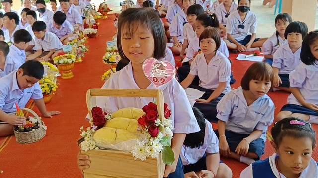 ผู้สื่อข่าวรายงานว่าด้วยเป็นโรงเรียนที่ผู้ปกครองส่วนใหญ่ ปลูกทุเรียนหลง-หลินลับแล สายพันธุ์ทุเรียนที่ขึ้นชื่อของจังหวัดอุตรดิตถ์ บรรยากาศวันไหว้ครูของโรงเรียนแห่งนี้ พานไหว้ครูนักเรียนแต่ละสายชั้น ต่าง ช่วยกันจัดทำพานไหว้ครูนำผลผลิตทุเรียน มีแทบทุกครอบครัว จัดเป็นพานไหว้ครู ส่งมอบความอร่อยให้คุณครูทุกๆคน ทั้งพานทุเรียนหลง-หลินลับแลเป็นลูกๆ แบบแกะเป็นพูพร้อมทาน ทุเรียนแปรรูป พร้อมนำต้นกล้าทุเรียนให้คุณครูได้ปลูกไว้บริเวณโรงเรียนด้วย เป็นความตั้งใจของเด็กๆ ลูกหลานชาวสวนลับแล