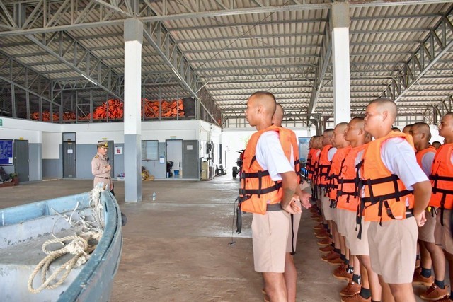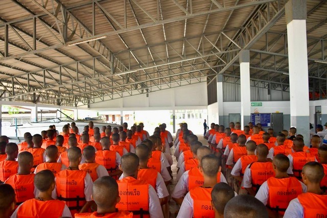 ศูนย์ฝึกทหารใหม่ กรมยุทธศึกษาทหารเรือ จัดกิจกรรมพายเรือกระเชียงในทะเล เพื่อฝึกความเป็นชาวเรือให้แก่น้องเล็กของกองทัพเรือ