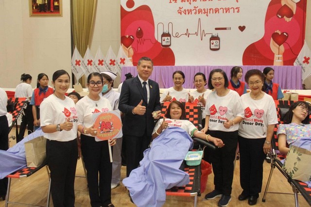 วันที่ 13 มิถุนายน 2568 เวลา 09.30 น. ณ หอประชุม 250 ปี มุกดาหาร จังหวัดมุกดาหาร นายวรญาณ บุญณราช ผู้ว่าราชการจังหวัดมุกดาหาร เป็นประธานพิธีเปิดโครงการวันผู้บริจาคโลหิตโลก ประจำปี 2568 ด้วยเหล่ากาชาดจังหวัดมุกดาหาร ร่วมกับโรงพยาบาลมุกดาหาร ออกหน่วยรับบริจาคโลหิตตามโครงการวันผู้บริจาคโลหิตโลก ประจำปี 2568 เพื่อเป็นการรณรงค์และเสริมสร้างพลังคนรุ่นใหม่ ให้ตระหนักถึงความสำคัญของการเป็นผู้บริจาคโลหิต โดยโลหิตที่ได้จะต้องเป็นโลหิตที่ปลอดภัย และเพียงพอต่อความต้องการของผู้ป่วย รวมทั้งยังเสริมสร้างคนรุ่นใหม่ เป็นผู้บริจาคโลหิตเพิ่มขึ้นได้อีกด้วย